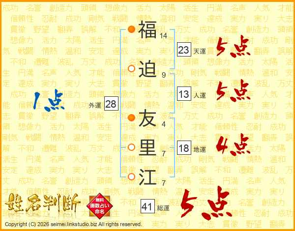福(14画)迫(9画) 友(4画)里(7画)江(7画)
