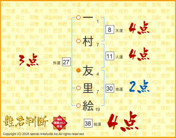 一村友里絵さんの地運は30画の2点!