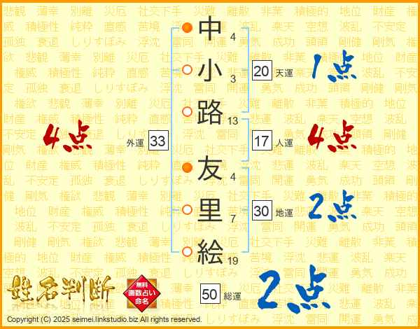 中小路友里絵さんの外運は33画の4点!