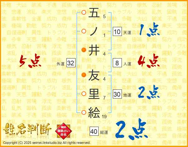 五ノ井友里絵さんの総運は40画の2点!