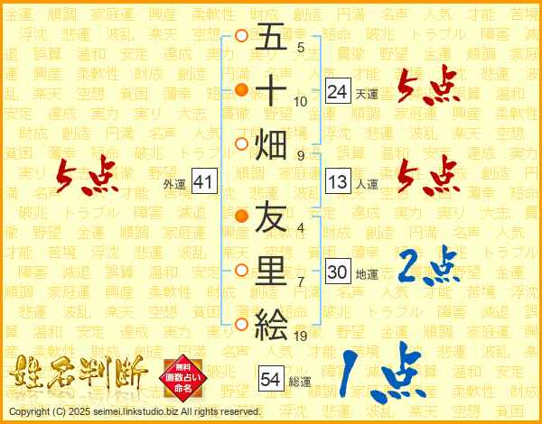 五十畑友里絵さんの総運は54画の1点!