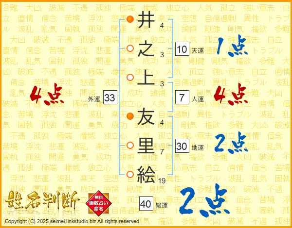 井(4画)之(3画)上(3画) 友(4画)里(7画)絵(19画)