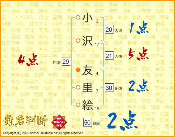 小沢友里絵さんの地運は30画の2点!