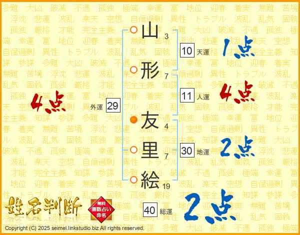 山(3画)形(7画) 友(4画)里(7画)絵(19画)