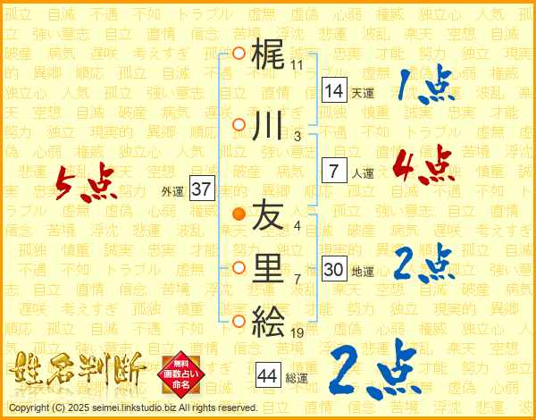 梶川友里絵さんの総運は44画の2点!