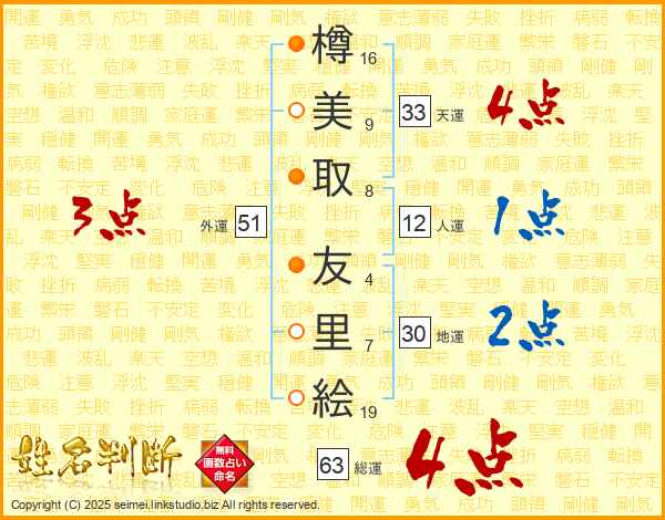 樽美取友里絵さんの総運は63画の4点!