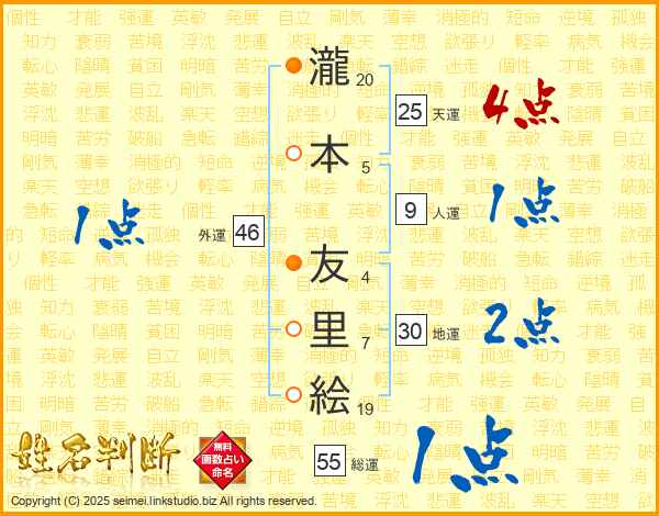 瀧本友里絵さんの天運は25画の4点!