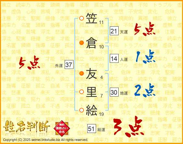 笠倉友里絵さんの天運は21画の5点!