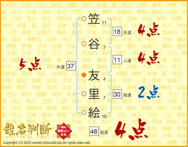 笠谷友里絵さんの総運は48画の4点!