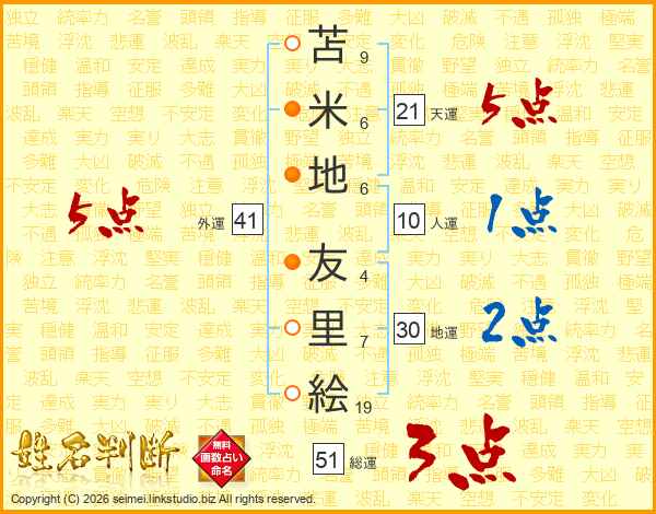 苫米地友里絵さんの外運は41画の5点!