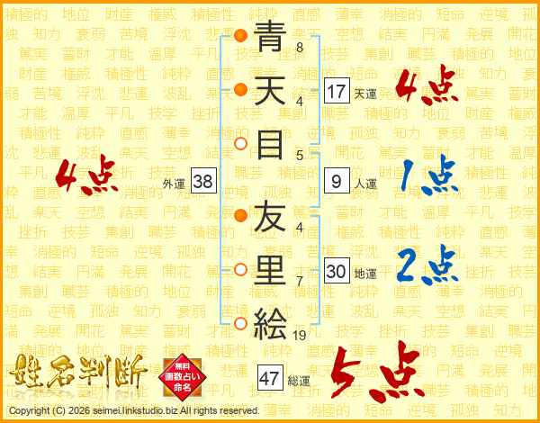 青天目友里絵さんの総運は47画の5点!