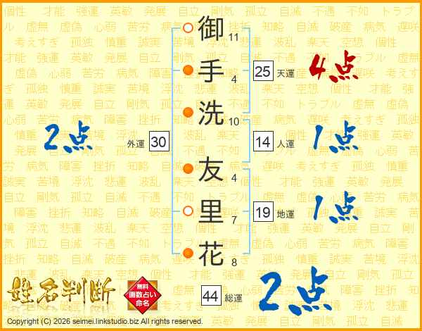 御手洗友里花さんの総運は44画の2点!