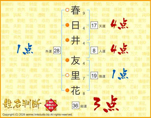 春日井友里花さんの天運は17画の4点!