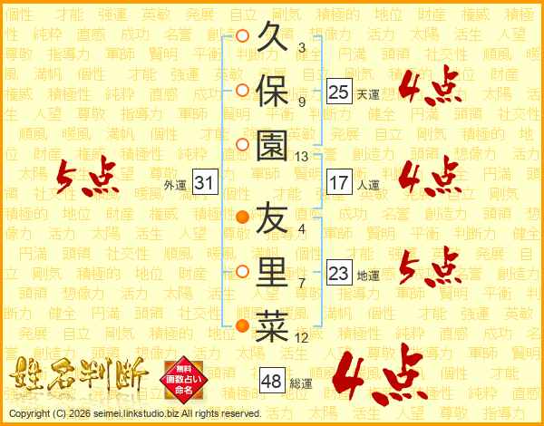 久保園友里菜さんの天運は25画の4点!