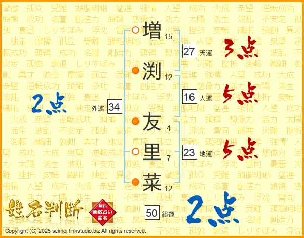 増渕友里菜さんの天運は27画の3点!