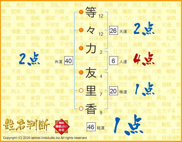 等々力友里香さんの天運は26画の2点!