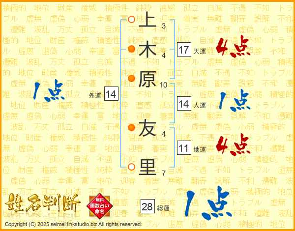 上木原友里さんの天運は17画の4点!