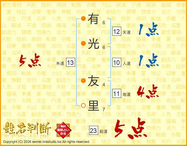 有光友里さんの総運は23画の5点!