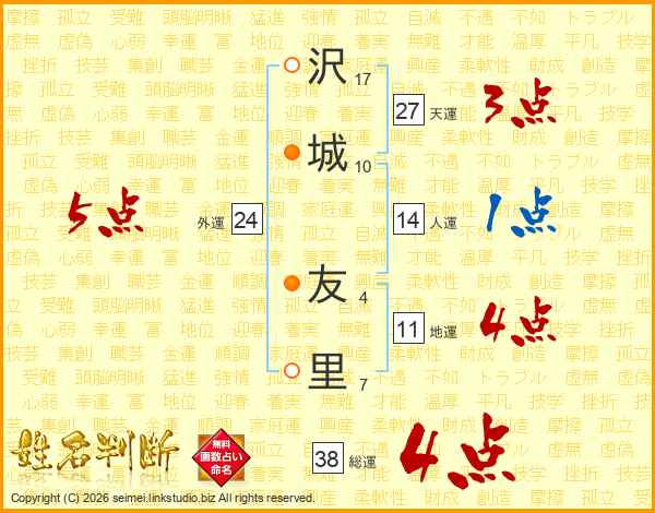 沢(17画)城(10画) 友(4画)里(7画)