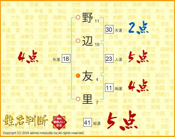 野辺友里さんの総運は41画の5点!