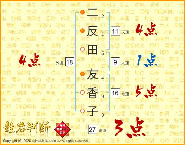 二反田友香子さんの天運は11画の4点!