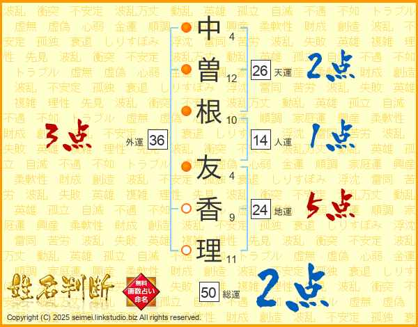 中曽根友香理さんの外運は36画の3点!
