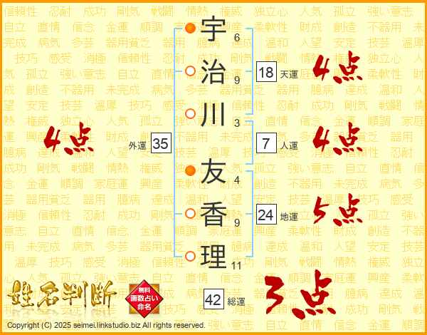 宇治川友香理さんの天運は18画の4点!