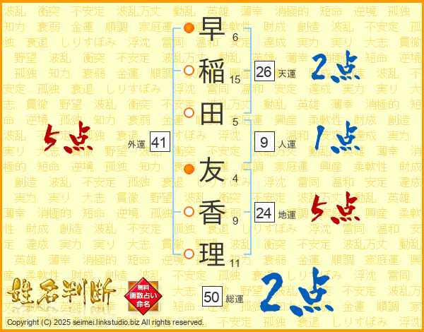 早稲田友香理さんの総運は50画の2点!