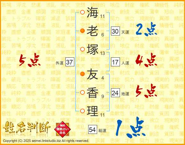 海老塚友香理さんの総運は54画の1点!