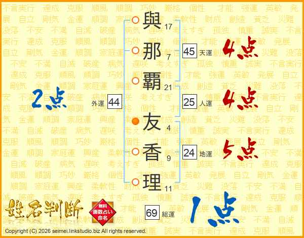 與那覇友香理さんの外運は44画の2点!