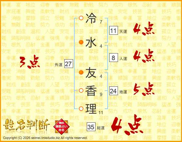 冷水友香理さんの総運は35画の4点!