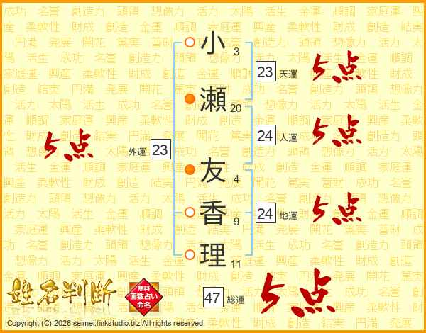 小瀬友香理さんの総運は47画の5点!