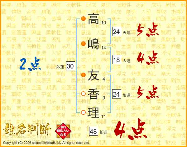 高嶋友香理さんの総運は48画の4点!