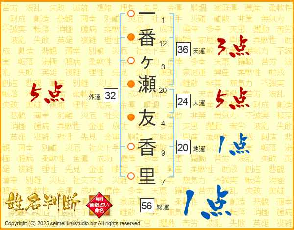 一番ヶ瀬友香里さんの外運は32画の5点!