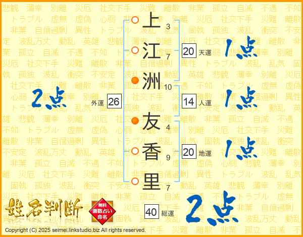 上江洲友香里さんの天運は20画の1点!
