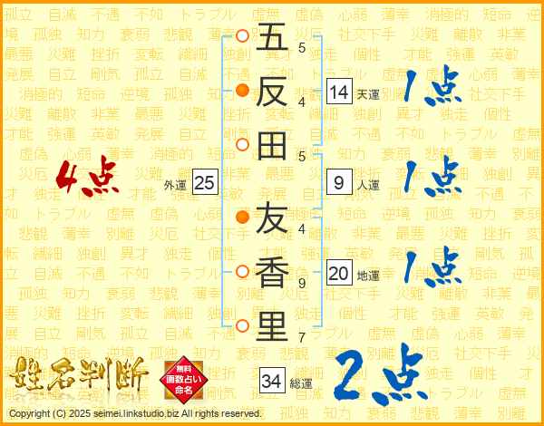 五反田友香里さんの天運は14画の1点!
