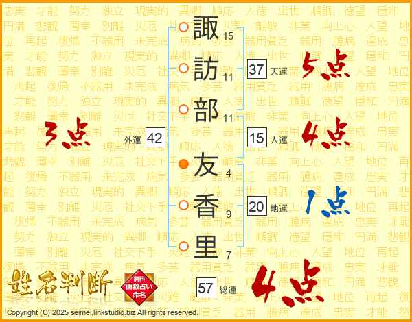 諏訪部友香里さんの総運は57画の4点!