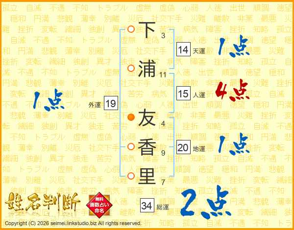 下浦友香里さんの人運は15画の4点!