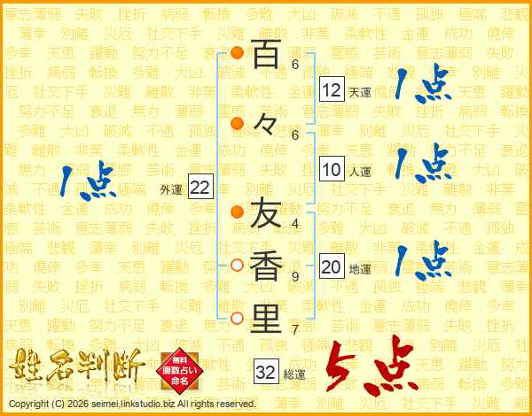 百(6画)々(6画) 友(4画)香(9画)里(7画)