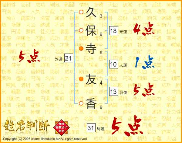 久(3画)保(9画)寺(6画) 友(4画)香(9画)