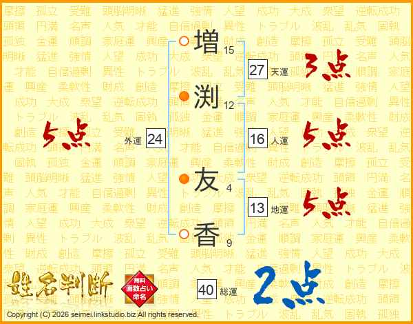 増(15画)渕(12画) 友(4画)香(9画)