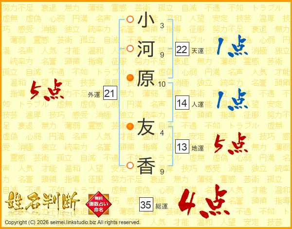 小(3画)河(9画)原(10画) 友(4画)香(9画)