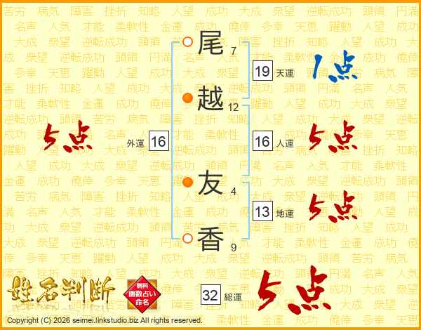 尾越友香さんの外運は16画の5点!