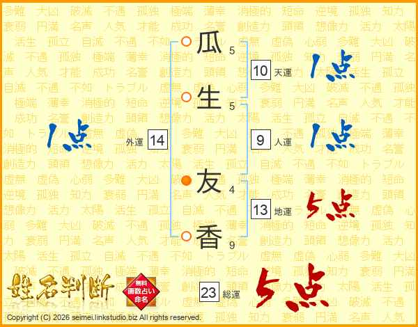 瓜生友香さんの総運は23画の5点!