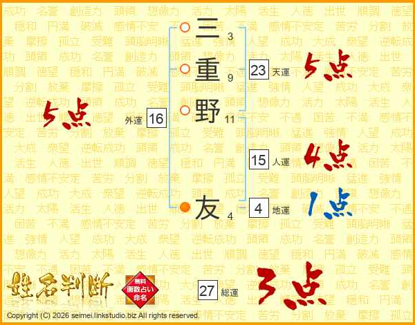 三重野友さんの総運は27画の3点!