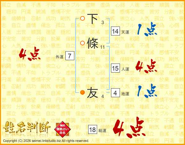 下條友さんの総運は18画の4点!