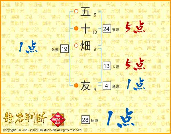 五十畑友さんの人運は13画の5点!