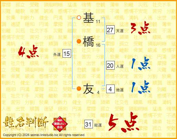 基橋友さんの総運は31画の5点!