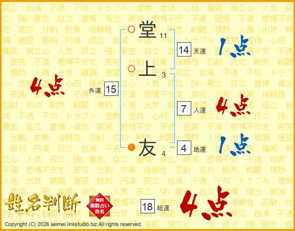 堂上友さんの総運は18画の4点!