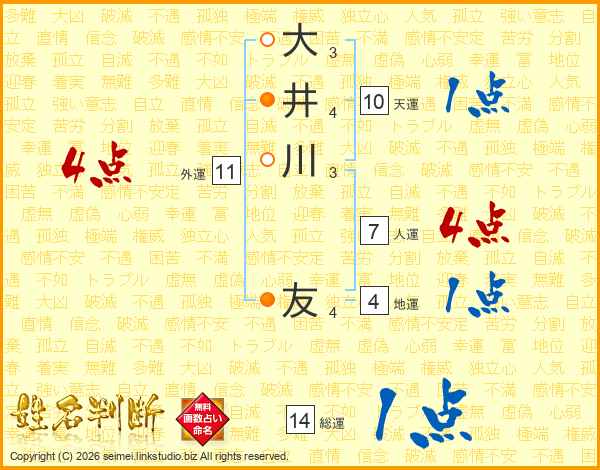 大井川友さんの人運は7画の4点!